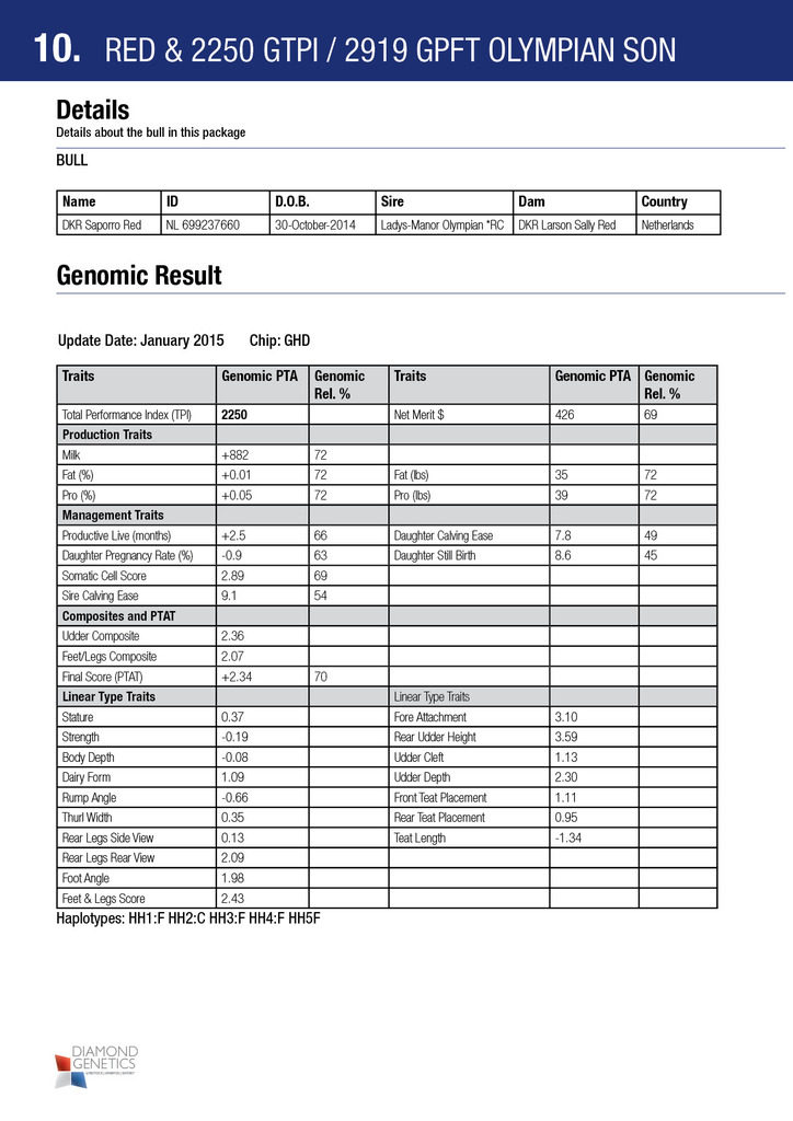 High type, good production and outcross RED bull with +2250 g TPI. This bull's dam is a maternal sister to the great Planet Silk EX-90 RDC and he offers unique blood and high milk yield genes to the RED population. Check this early RED Olympian son out and make him yours!