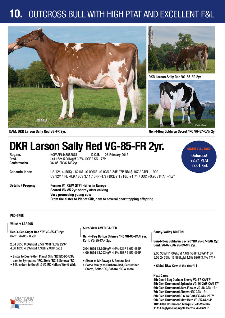 Sire: Ladys-Manor OLYMPIAN *RCDam: DKR Larson Sally Red VG-85-FR 2yr. | Scored VG-2yr. shortly after calving
