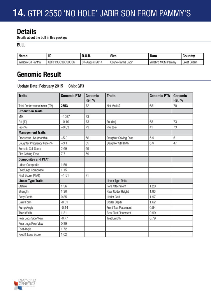 From the heart of the Windy-Knoll-View Promis family: a high and complete Jabir son. His VG dam is at Willsbro in the UK and she is for real, like her Baxter x Durham dam. A VG full sister to this bull's dam is the dam of RH Superman at Semex. This line transmits and this Jabir son has a flawless genomic profile. He can be yours!